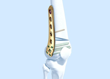 Patiënten met een belangrijke asafwijking kunnen behandeld worden met een ascorrectie. Op die manier wordt de asymmetrische belasting gecorrigeerd.